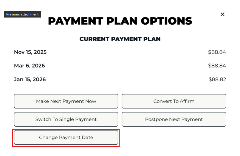 Once I've placed an order with a payment plan, am I able to change the date of the month payments are processed?