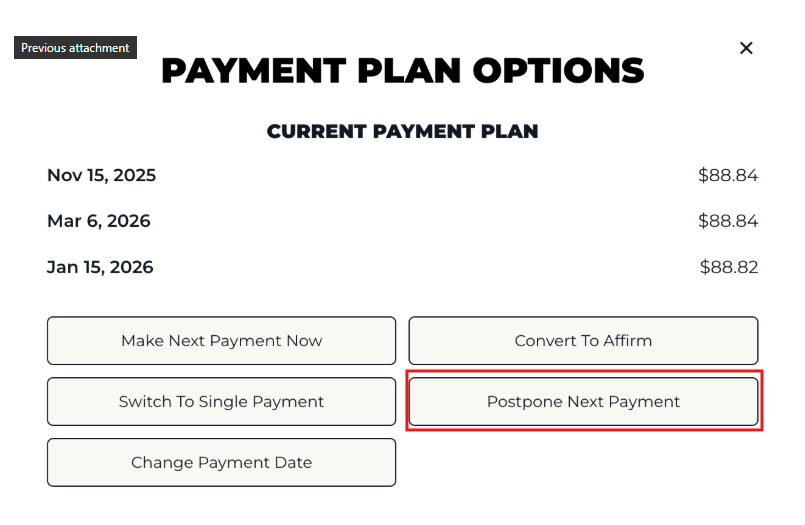 Once I've placed an order with a payment plan, am I able to opt out and switch to a single payment?